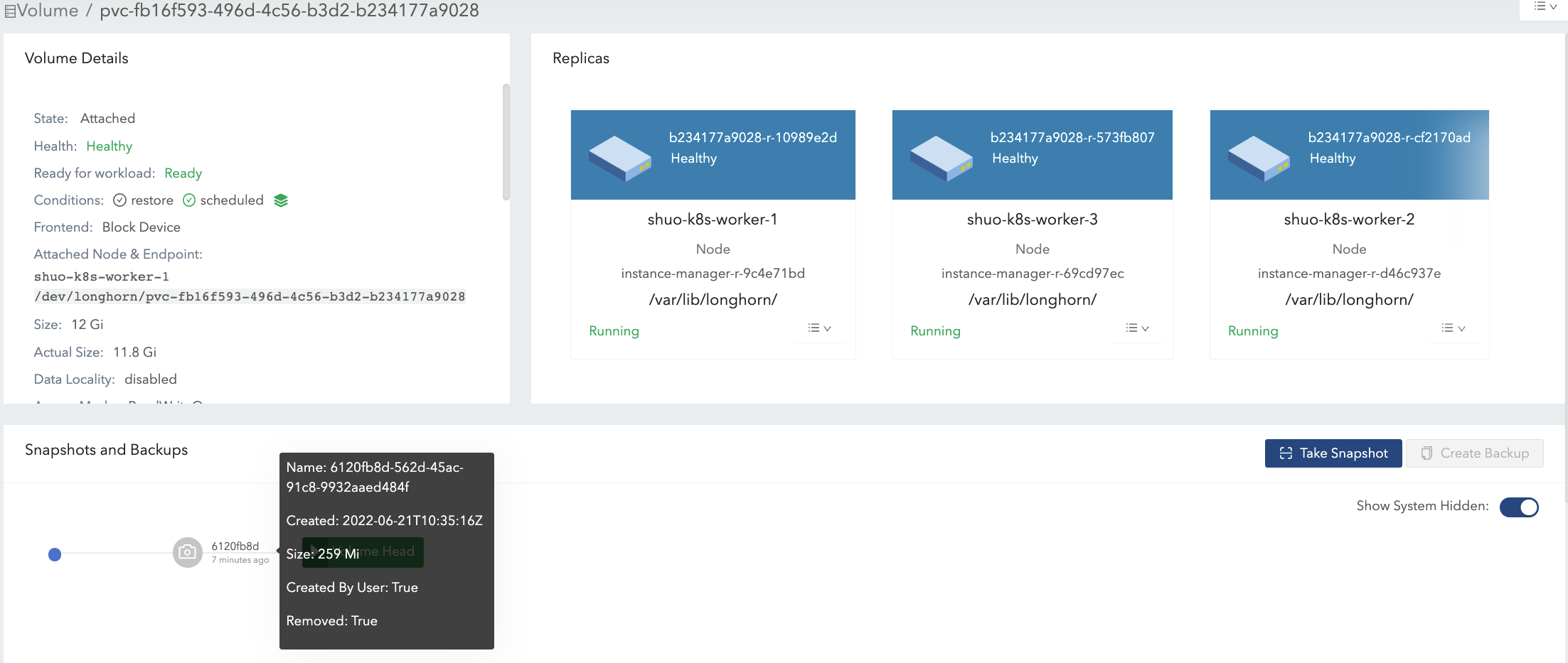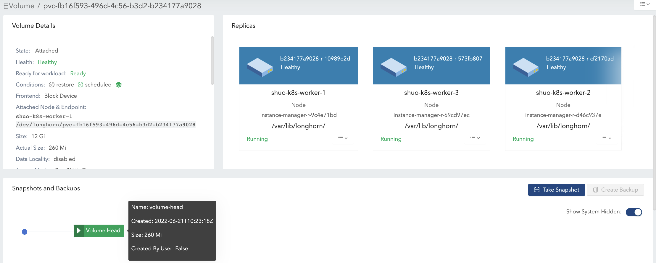 • The 3rd 1 is the system snapshot. If the rebuilding is triggered or the expansion is issued, Longhorn will create a system snapshot before starting the operations. And this system snapshot may not be able to get cleaned up immediately.