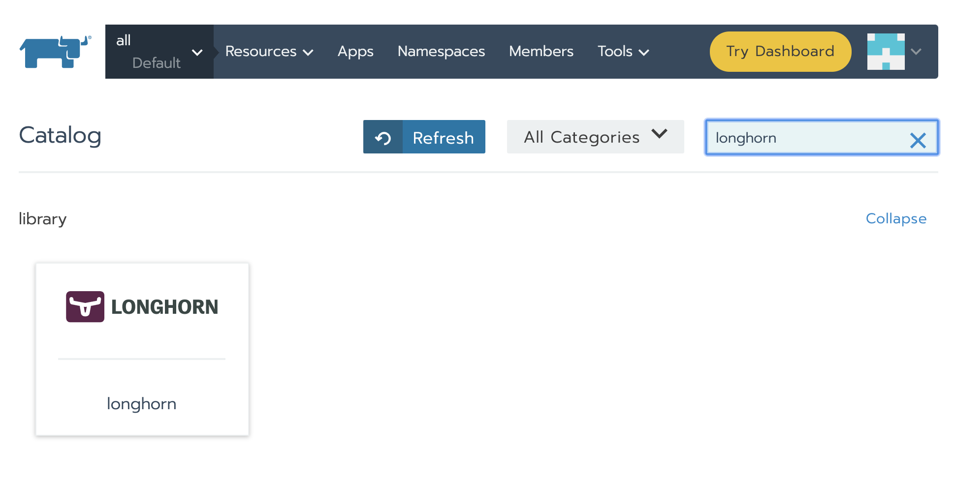 After Longhorn has been successfully installed, you can access the Longhorn UI by navigating to the Catalog Apps page.